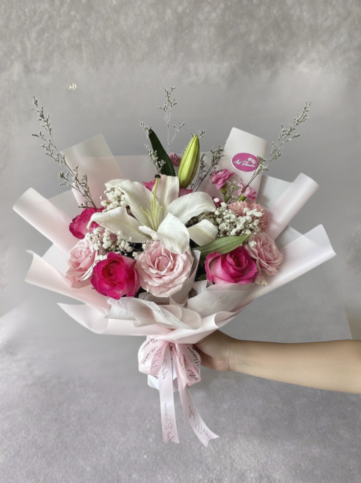 8 stem Rose candy dan pink muda